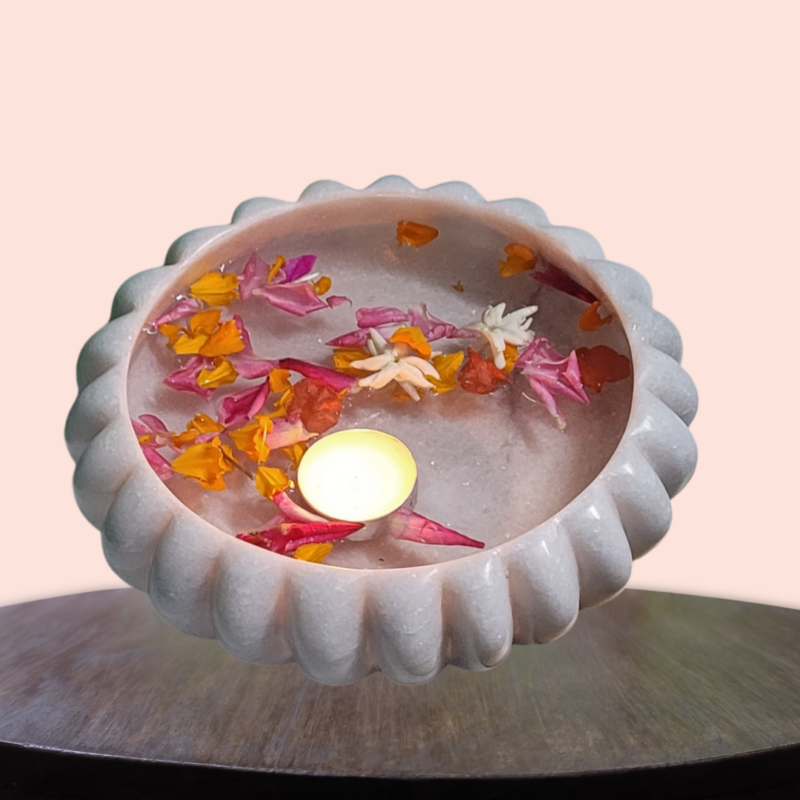 For This special beautiful decorative yet Bird Bath product we are providing Marble pot in floral shape . So just feel this pot with water and place it outside, to enhance beauty you can add flowers .