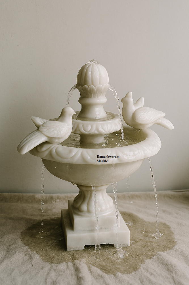 Crafted by skilled artisans of Rameshwaram Marble, Udaipur, this birdbath fountain bowl combines functionality, artistry, and natural charm, making it a perfect addition for nature lovers and decor enthusiasts alike.